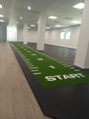 If the floor has loose particles, you will need to treat it first with a primer suitable for the type of floor material (which is usual for concrete floors, for instance). After adhering the turf track to the floor, it is mandatory to leave it to set at least 24 hours before use.