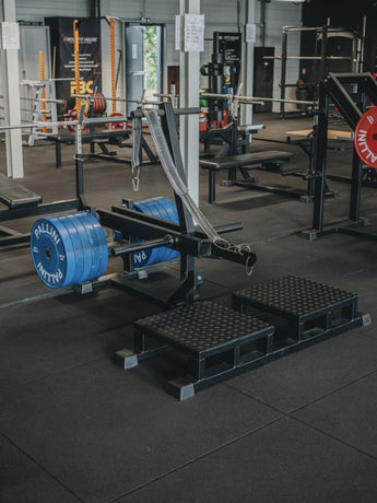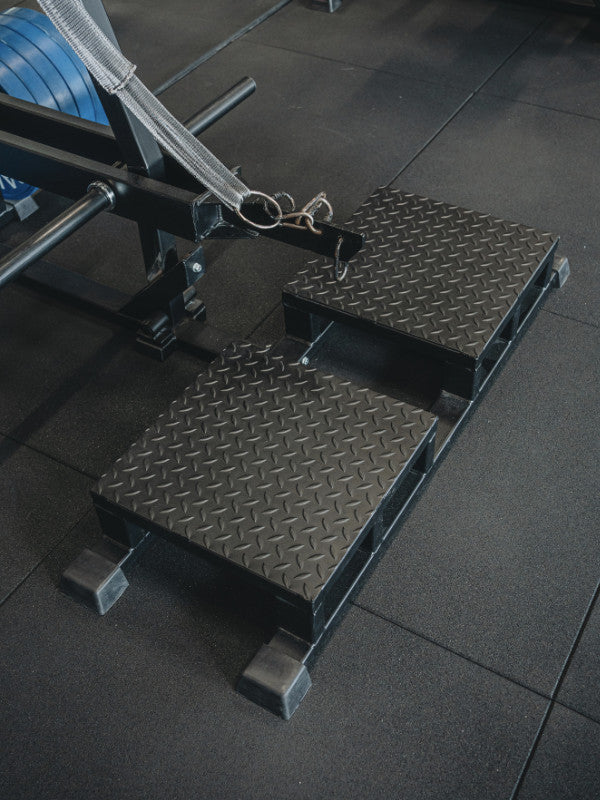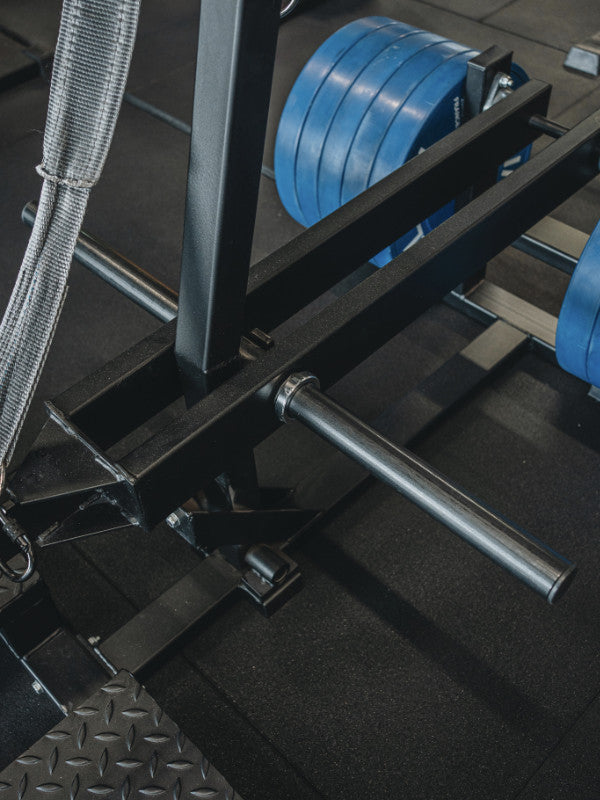 The Belt Squat Machine allows for lower body muscle training with a significant load. The weight of the belt squat machine is attached at the hips via its belt and is particularly useful for those with shoulder, wrist, neck, and sometimes lower back injuries.