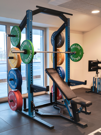The Half Rack HR1 is the shorter version of the Power Rack PR1. It's an ideal squat rack for professional clubs and gyms looking to provide a robust, adaptable, and comprehensive training machine. It allows for squat and bench press movements and includes a pull-up bar and eight storage tubes for your weight plates.