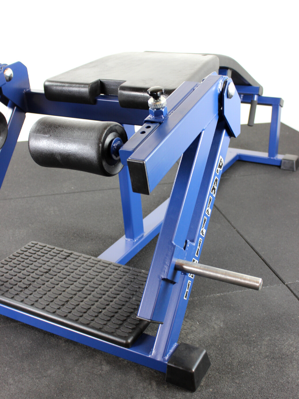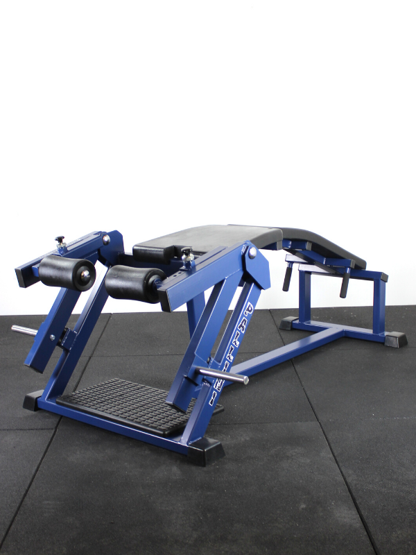 Machine for working the hamstrings in a supine position with free weights. The exercise is performed by bending the legs while bringing the heels towards the gluteal muscles.