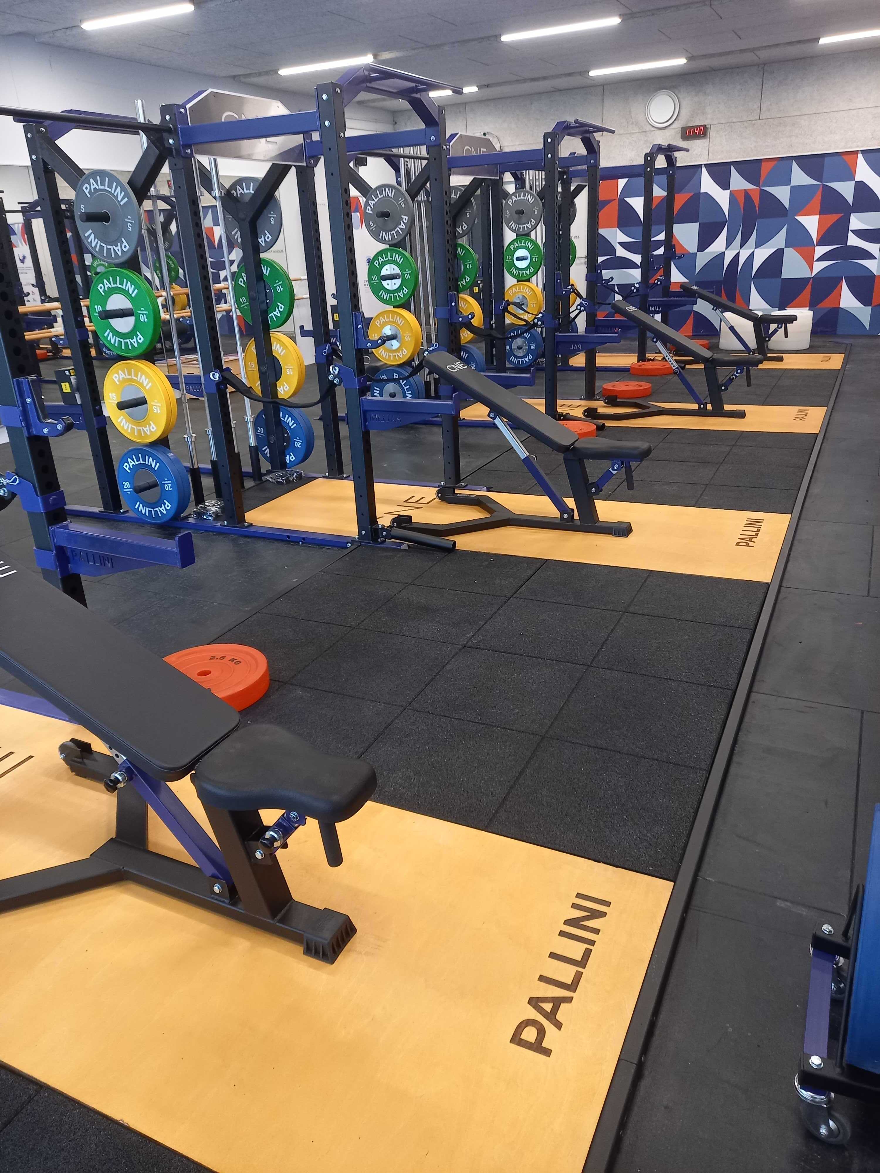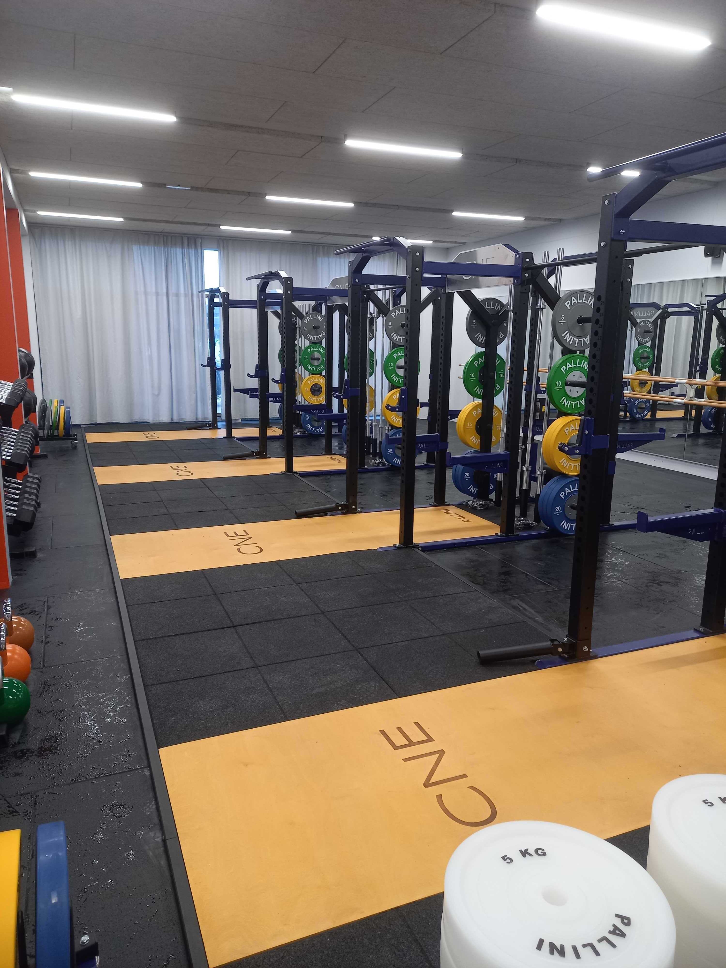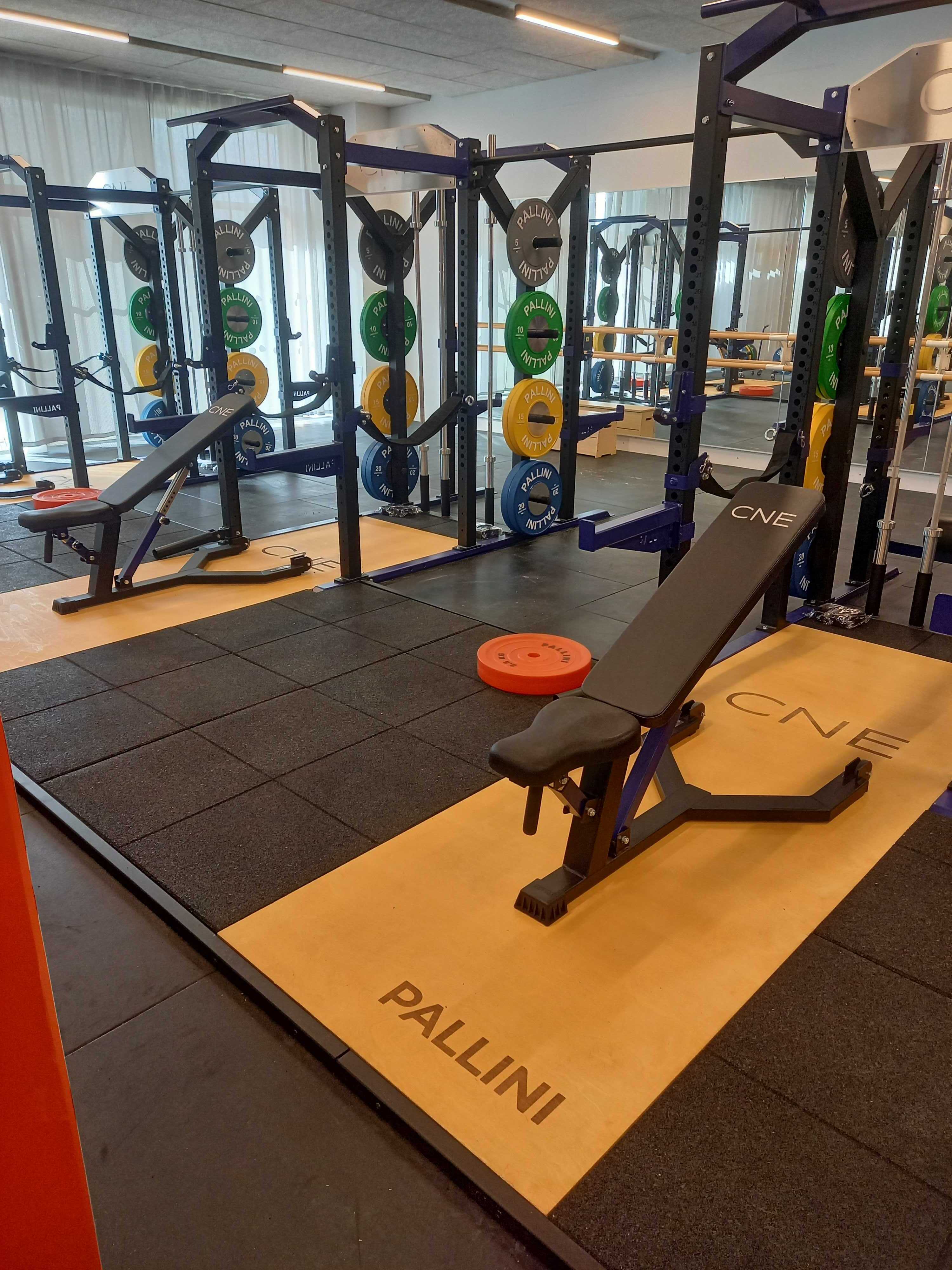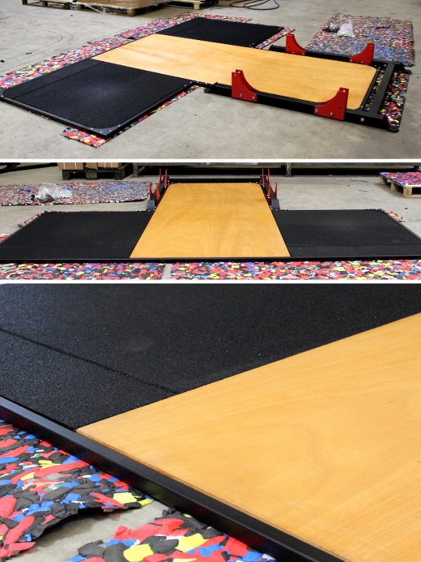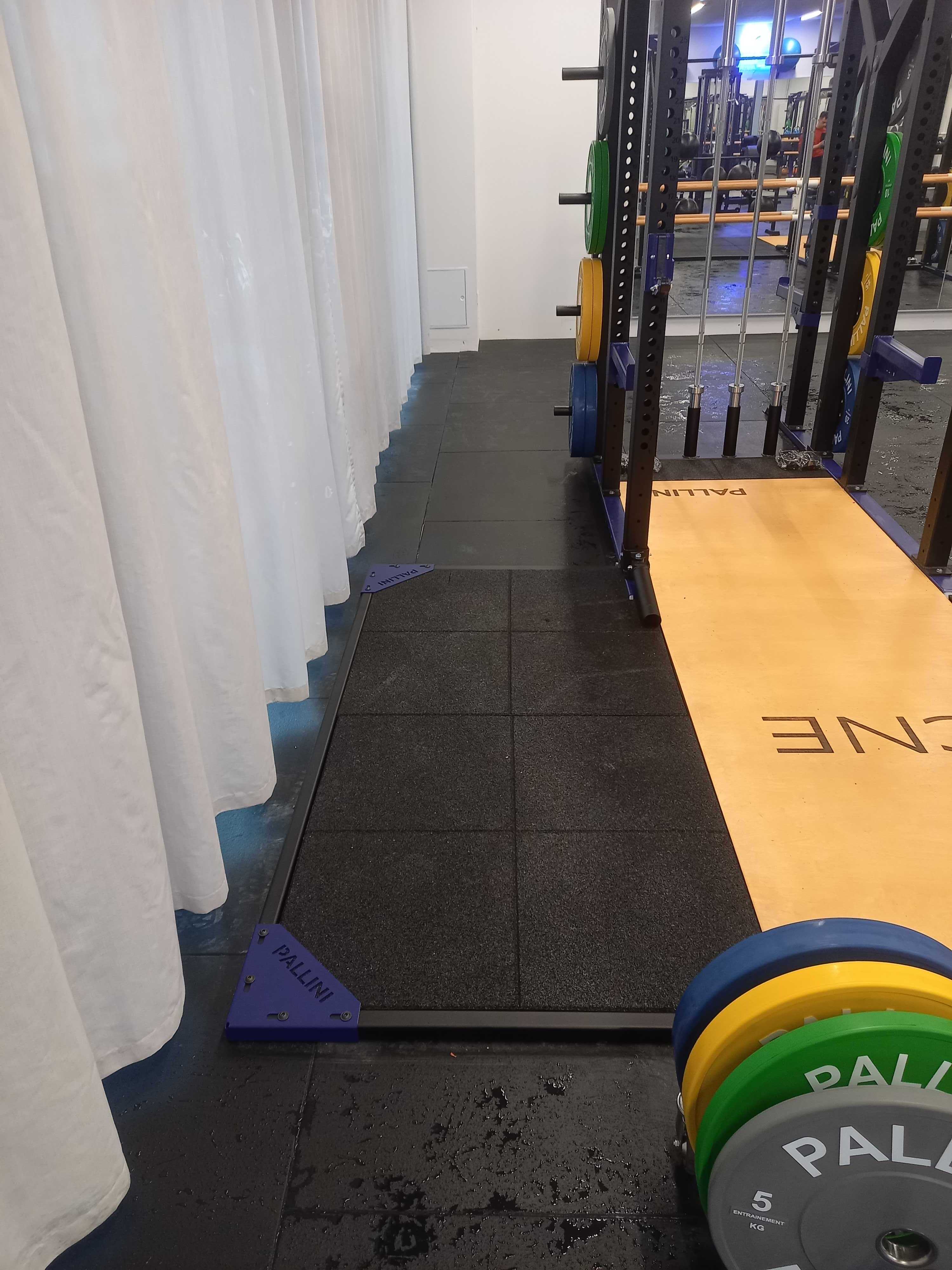 Insert platform for racks and squat cages allowing you to perform your movements on a platform made up of shock-absorbing tiles.